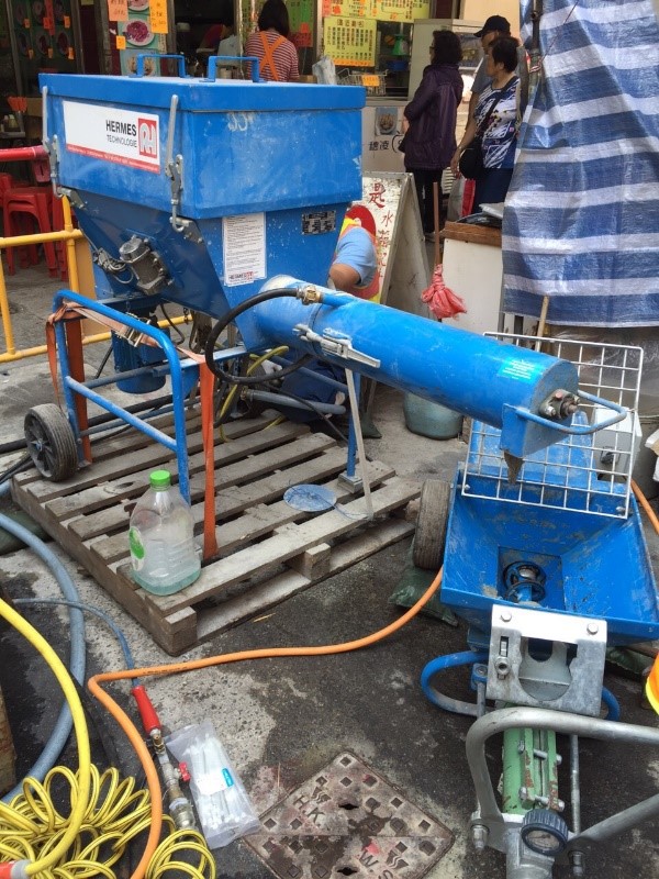 | 沙井復修工具及設備 | 旋轉噴漿機開始沙井復修(噴井)工作 |