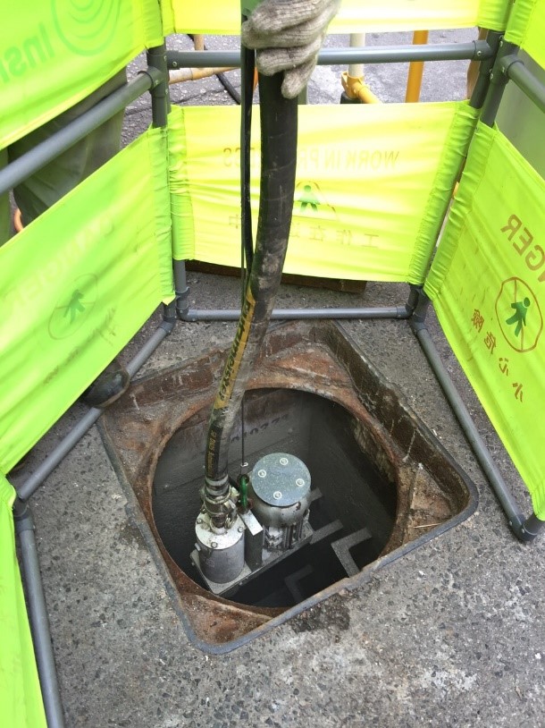 沙井修復前要清洗井內污穢物,之後使用沙井修復設備將有快乾成份的英泥放入箱內再加適量水份攪動混合成胡狀,將巳混合的英泥由內置的推動器經噴漿喉注入到旋轉噴漿機上,旋轉噴漿機會由上至下和下至上360℃不斷旋轉放出英泥,英泥帶有黏性會緊貼在井內,上下來回20至30轉後就完成沙井修復工作。我們會作沙井完成事前和事後詳細記錄,其後再附上一份符合渠務署格式及圖文並茂的報告以給客戶作紀錄。